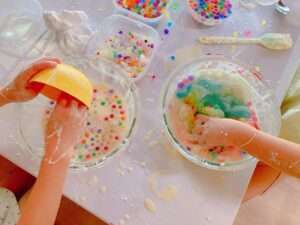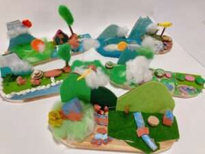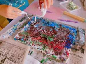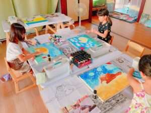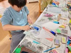 ◉ 学校で習った他の教科の内容も織り交ぜつつ、制作や表現を楽しみます。