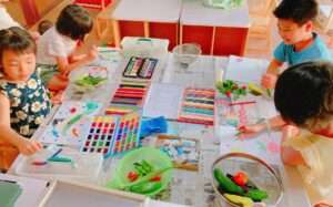 | 使用画材 | クレヨン、油性ペン、水彩絵の具、パステル、のり、ボンド、ハサミ、折り紙、セロテープ、ホッチキス、カッター、鉛筆、色鉛筆、デッサン用鉛筆、水彩色鉛筆、彫刻刀、裁縫道具、ペン、染料、工具、ミシンなど |
